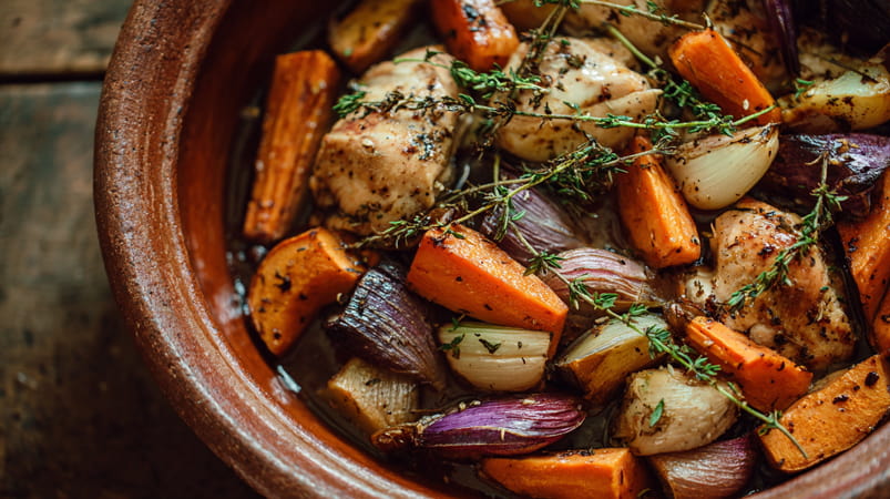 למנה העיקרית, אני ממליצה על מקור חלבון קל לעיכול, כמו עוף אפוי או דג סלמון. העוף האפוי עם ירקות שורש בסגנון ירושלמי הוא אחד המתכונים האהובים עלי במיוחד לארוחה המפסקת. העוף מספק חלבון איכותי שמתעכל בקלות, וירקות השורש מוסיפים סיבים תזונתיים וויטמינים חיוניים.