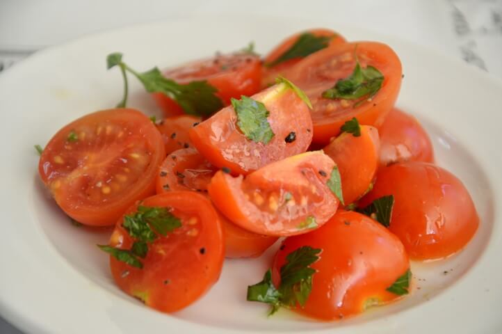 סלטים פשוטים לשבת שמביאים טעמים נפלאים לשולחן. עגבניות שרי חצויות, בצל סגול דק, בזיליקום טרי ושמן זית איכותי. סלטים טריים לשבת מושלמים לעונת הקיץ, מרעננים וקלילים, ומוכנים בתוך 5 דקות בלבד. פתרון מצוין כשצריכים סלט מהיר ברגע האחרון.