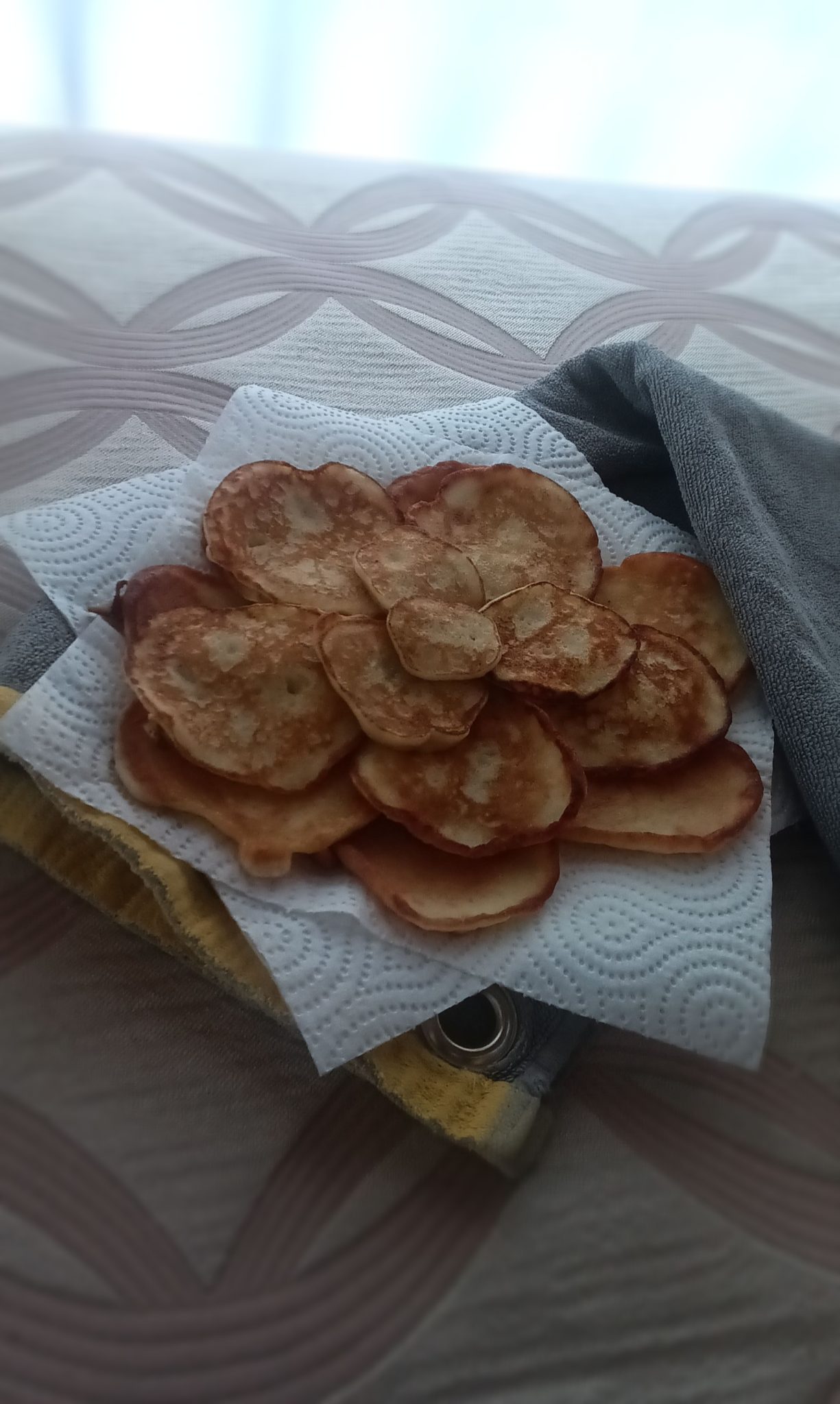 - מחממים מחבת רחבה עם כפית גדושה שמן (יש להשתמש במחבת בעלת ציפוי שאינו נדבק!). כשהמחבת חמה יוצקים כמות של כף מהתערובת למחבת (מומלץ לטגן 4-5 לביבות בכל סבב). מנמיכים לאש בינונית-נמוכה ומכסים את המחבת. כעבור 2.5 דקות מרימים את המכסה ובעזרת תרווד הופכים את הלביבות צד. מכסים את המחבת ומשאירים במשך 2.5 דקות.
