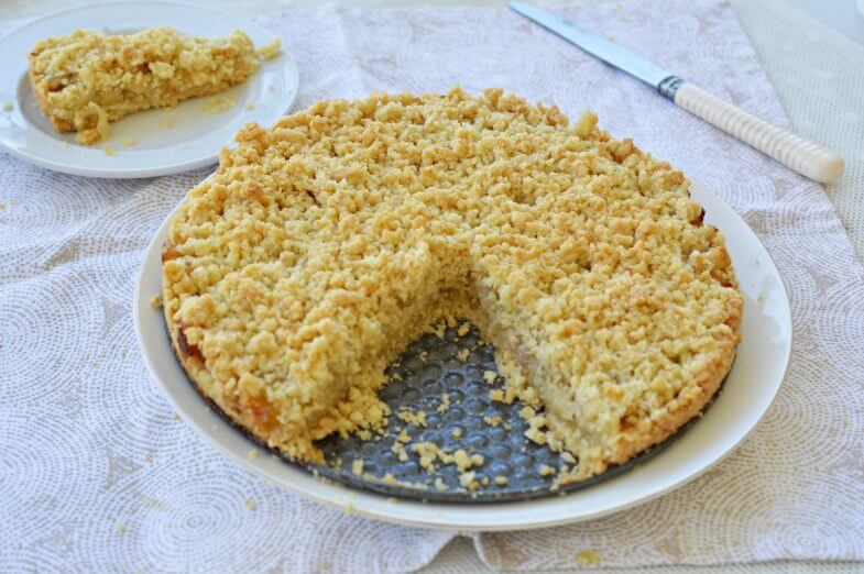 הפעל טיימר (12 דק’)+טיימר פועל - מוסיפים את תערובת התפוחים מעל התחתית האפויה ומשטחים באופן אחיד. מוציאים את הבצק מהמקפיא ומפוררים מעל התפוחים באופן אחיד.
