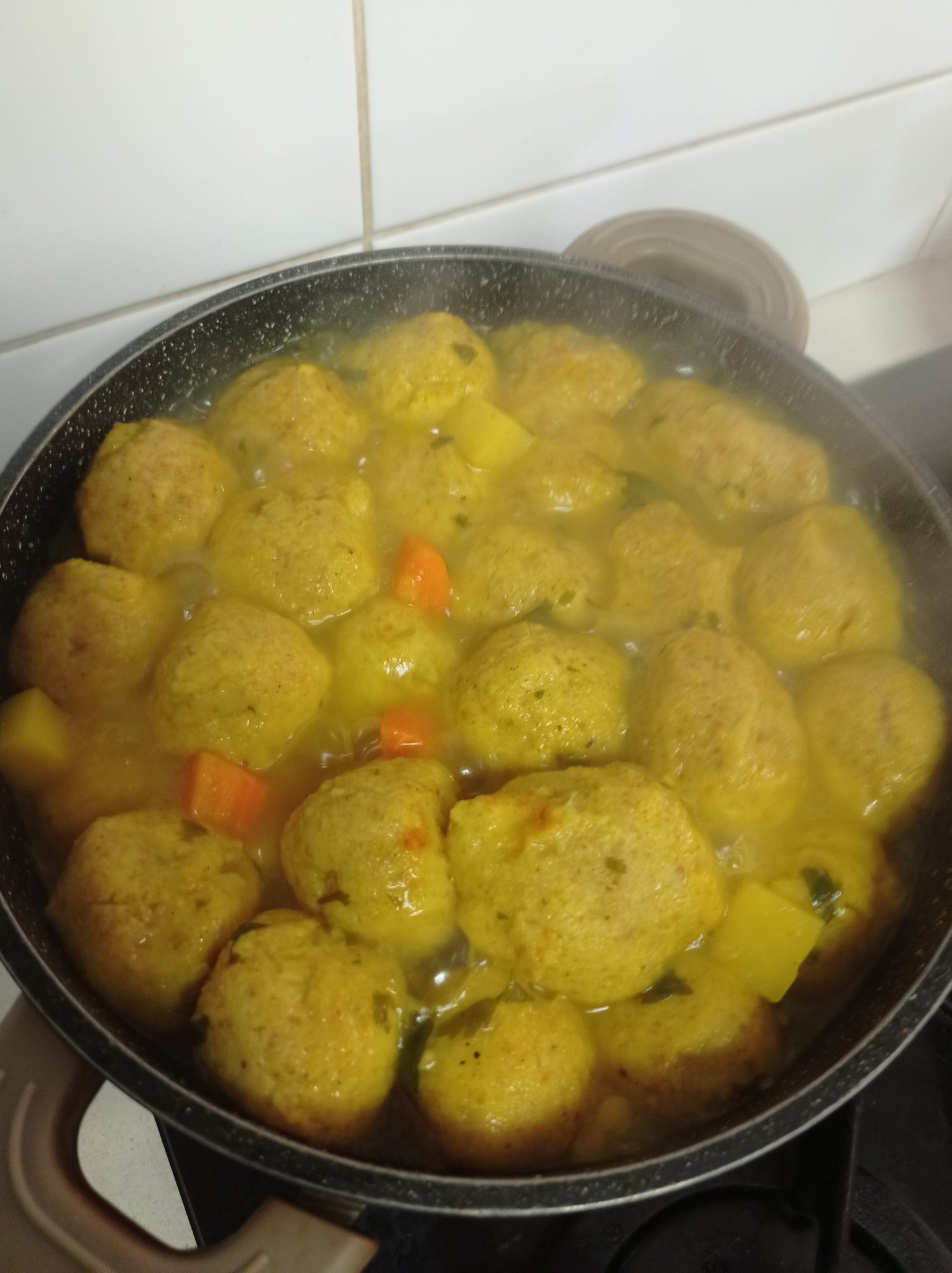 5. מבשלים במצב רתיחה כ- 6 דקות עם מכסה חצי סגור עד שהכדורים צפים ומבושלים.