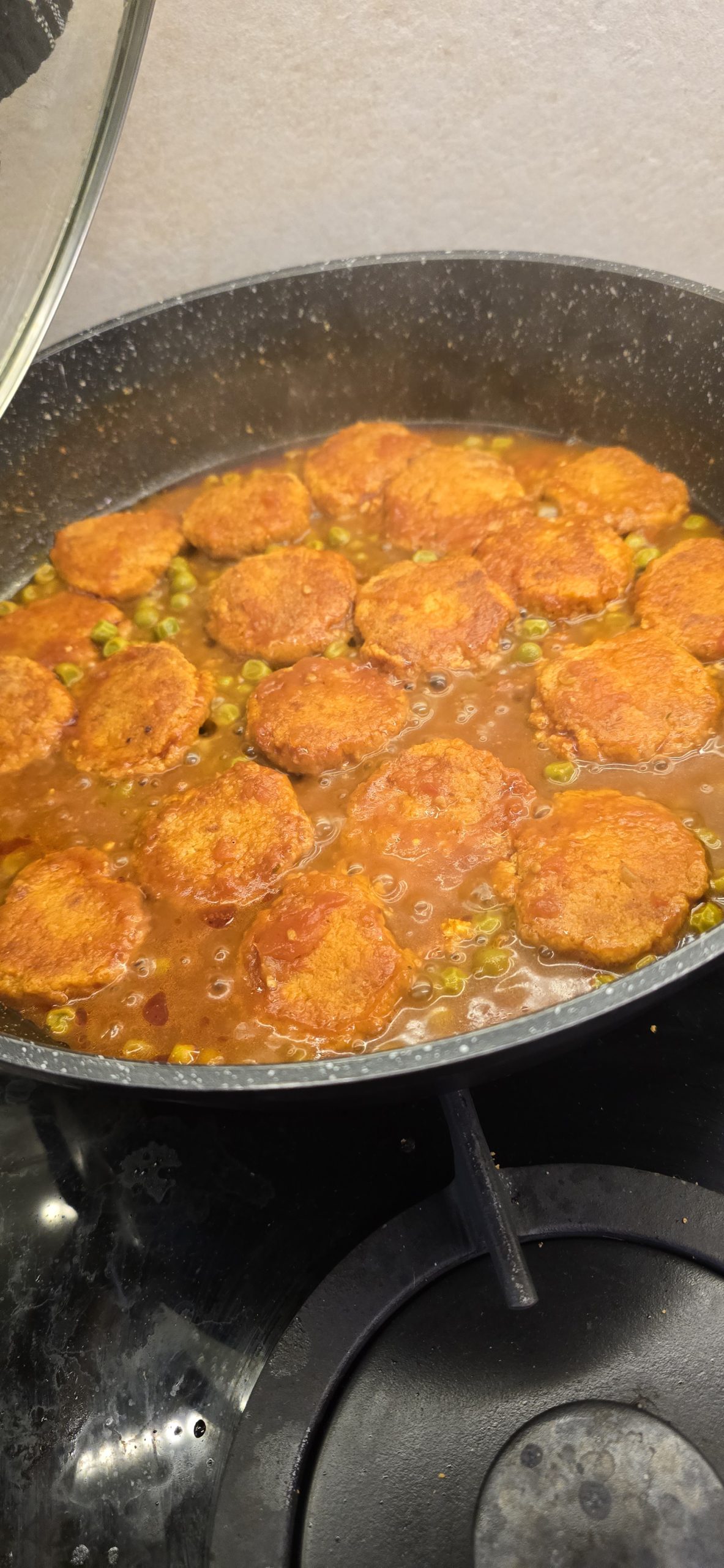 מתכון לקציצות טופו צמחוניות ברוטב אדום עם אפונה וגזר. מומלץ להגיש עם אורז לבן