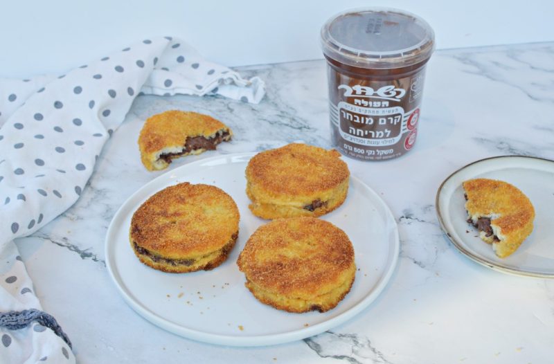 - מורחים ממרח השחר על פרוסה עגולה ומצמידים פרוסה נוספת (כמו כריך).