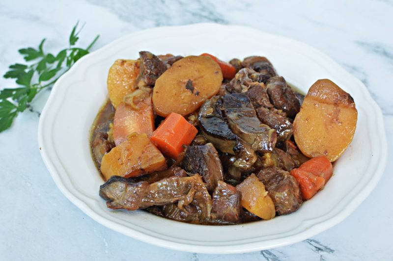 - מנמיכים לאש בינונית-נמוכה, מכסים את הסיר ומבשלים במשך כ-3 שעות, עד שהבשר מתרכך לגמרי.