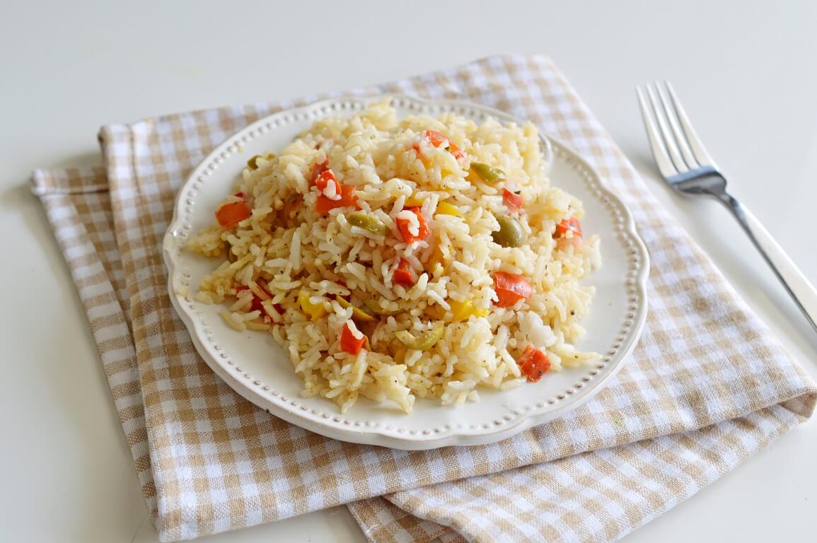 מצרכים להכנת אורז עם פלפלים וזיתים