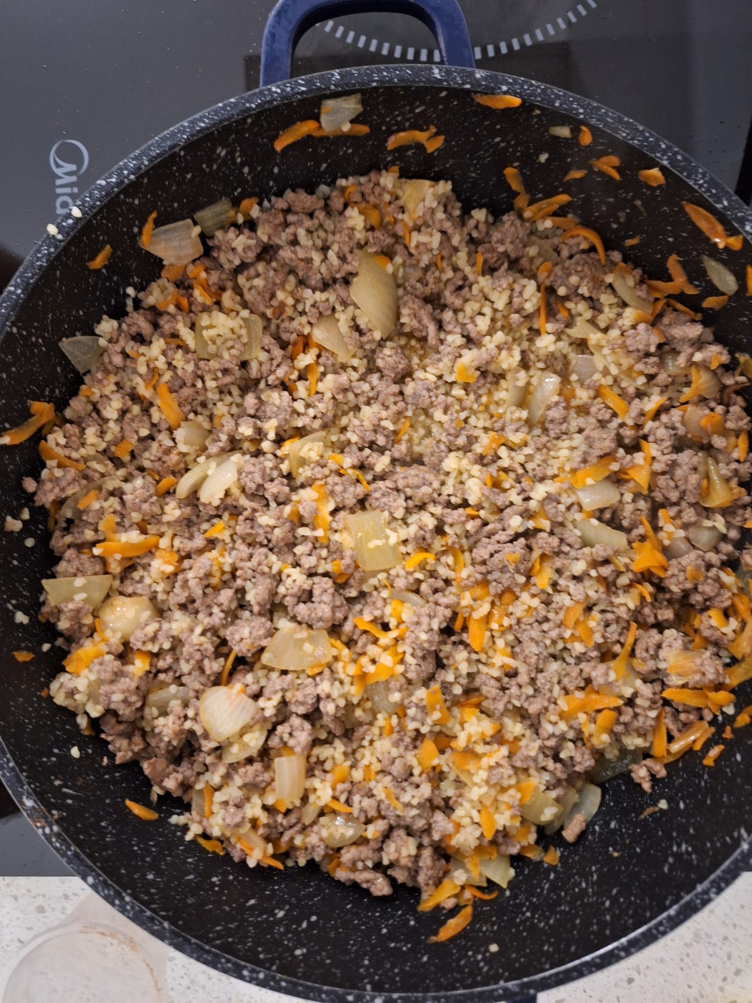 - מוסיפים את הבשר הטחון ומבשלים תוך ערבוב עד שהבשר מתבשל לגמרי ומשנה את צבעו.