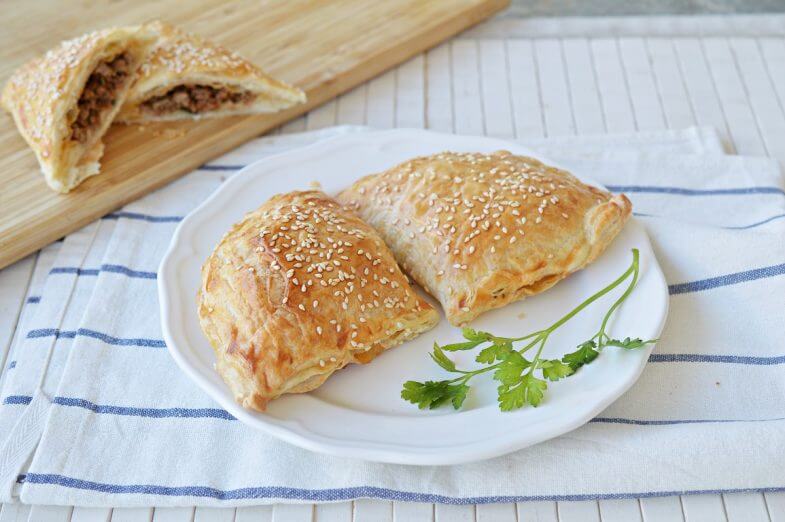 - פורשים מלוואח על משטח עבודה וחותכים לחצי (אם הבצק נדבק למשטח כדאי לפרוש את הבצק על נייר אפיה). מניחים כ-2 כפות גדושות מתערובת הבשר ומקפלים לחצי. מהדקים היטב את השוליים (מומלץ לקפל את הקצוות כלפי מעלה ולהדק).