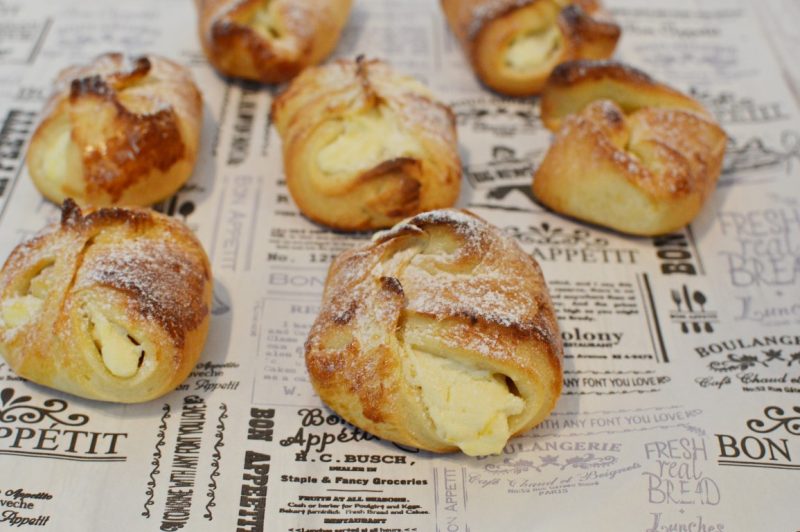 - -מניחים במרכז כל ריבוע כפית ממלית הגבינה וסוגרים את הריבוע לצורה של מעטפה (מניחים את הקצוות האלכסוניות אחת מעל שניה ומהדקים).