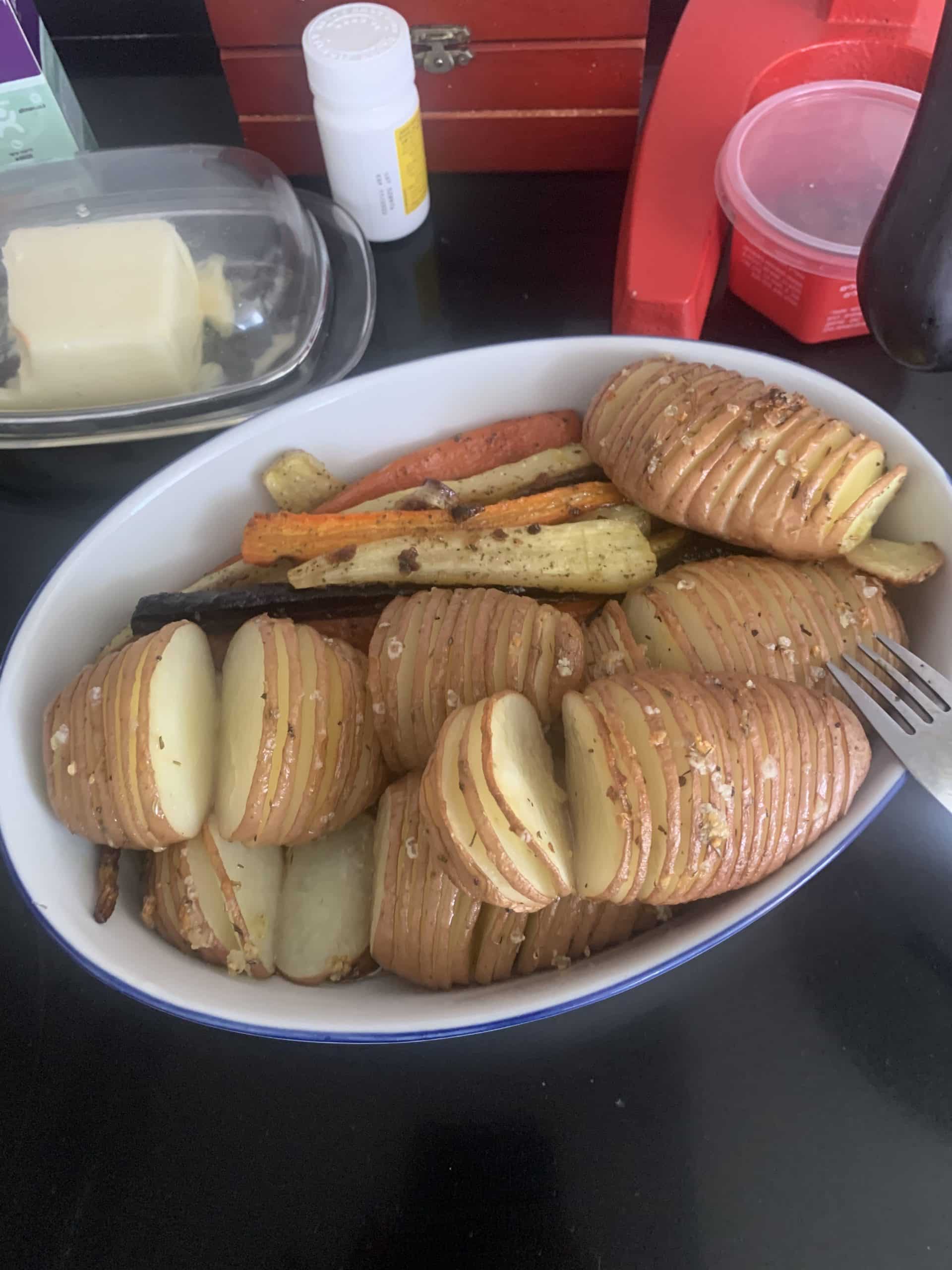 - מניחים על תבנית גדולה מרופדת בנייר אפיה ומכניסים לתנור שחומם ל-180 מעלות במשך 45-50 דקות, עד לריכוך והזהבה קלה.
