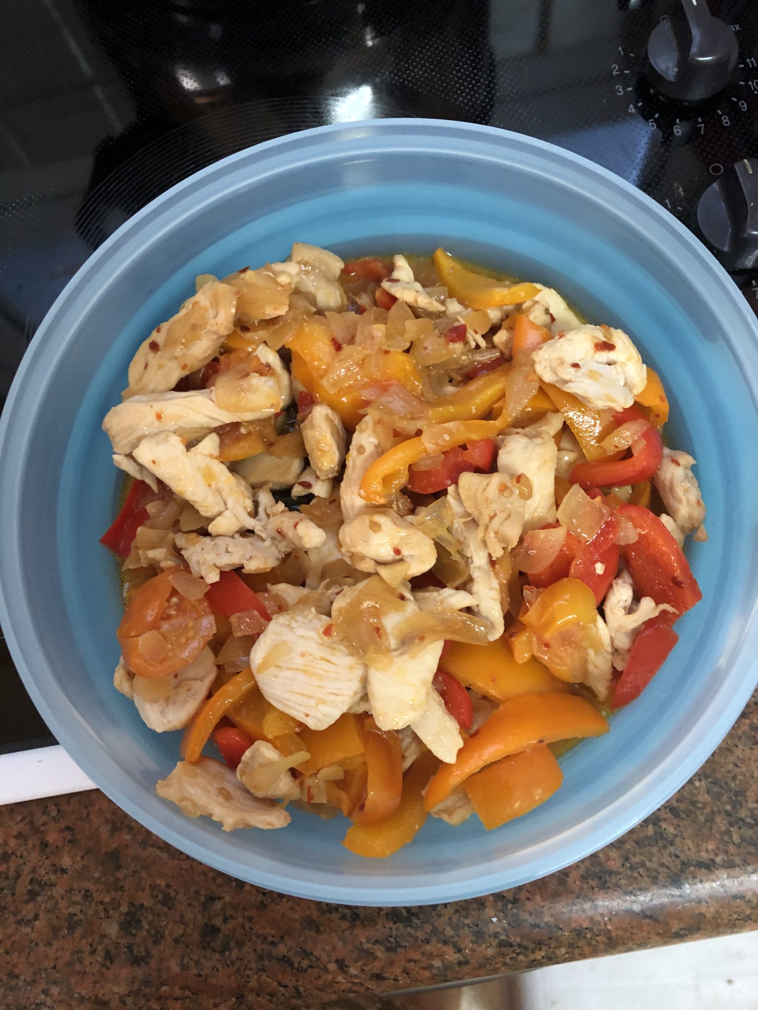 הוספתי עגבניות שרי חצויות כשהוספתי את הפלפלים למחבת.