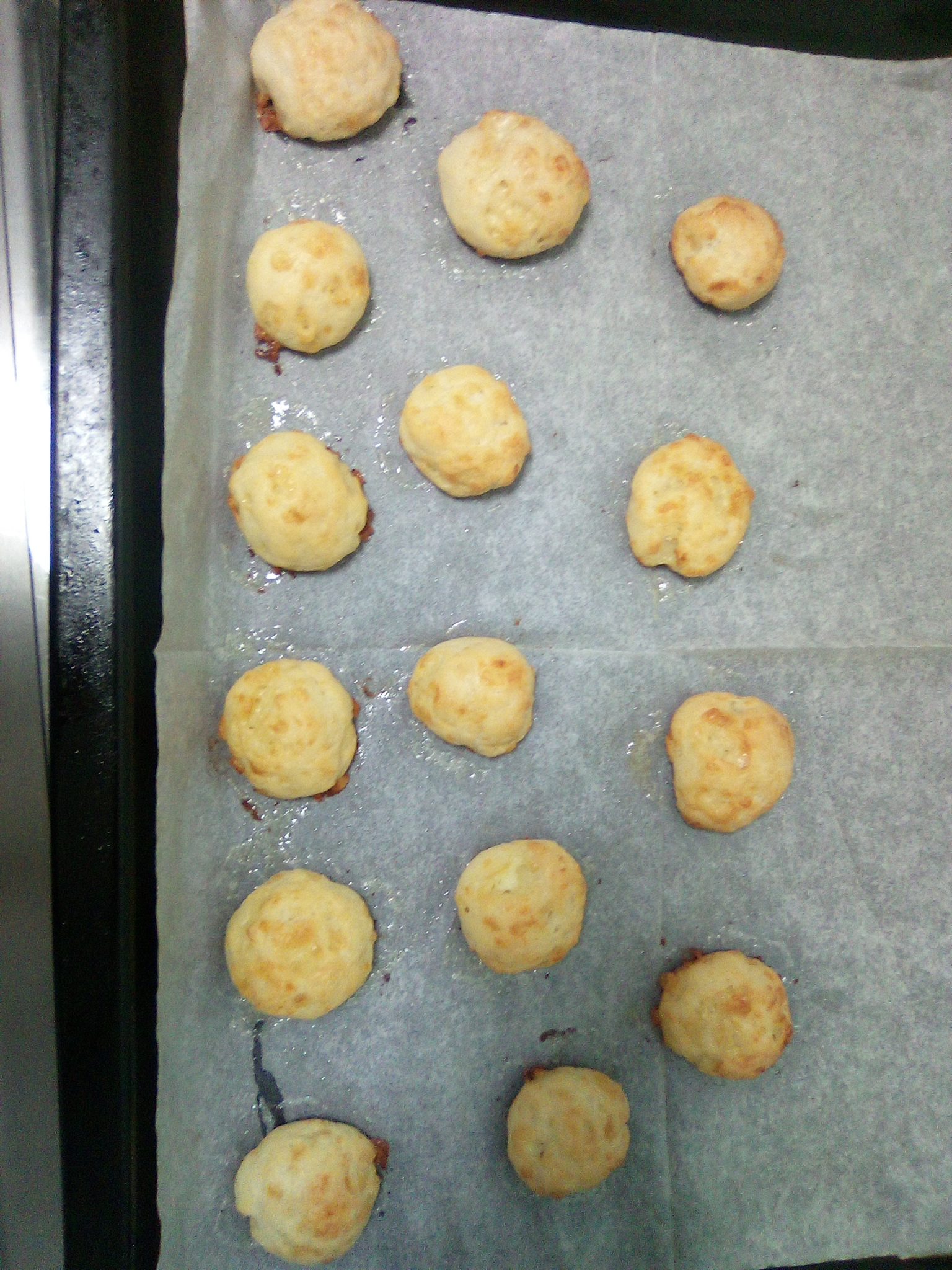 - בעזרת ידיים רטובות יוצרים כדורים קטנים (בקוטר כ-3 ס”מ) ומניחים במרווחים על נייר האפיה. מברישים בביצה טרופה או שמן ומפזרים שומשום.