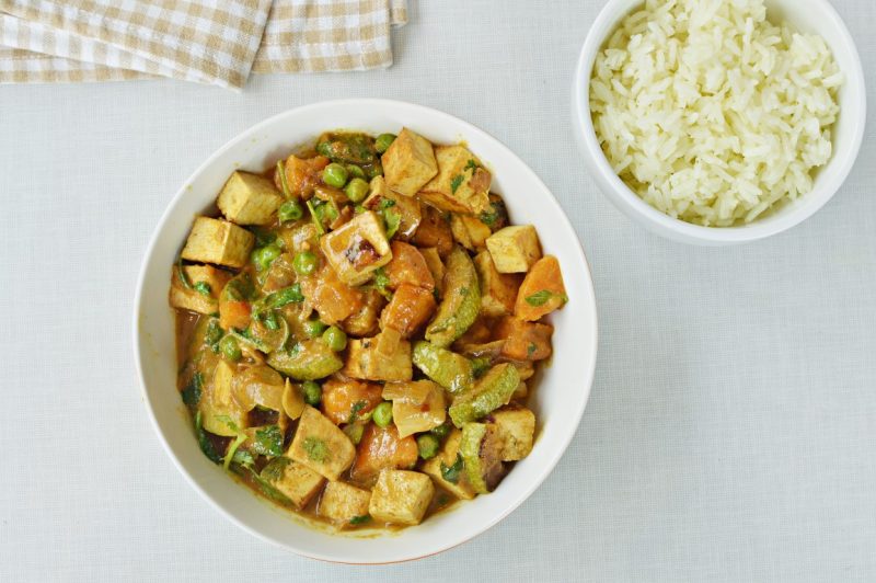 מצרכים להכנת תבשיל טופו וירקות בקארי