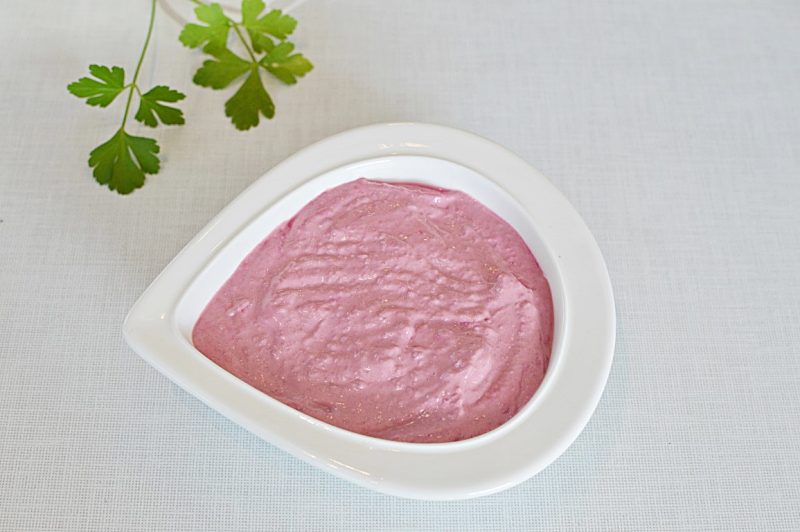 אם אין לכם מעבד מזון ניתן להוסיף לטחינה הלבנה כמה כפות מי סלק, עד לגוון הרצוי.