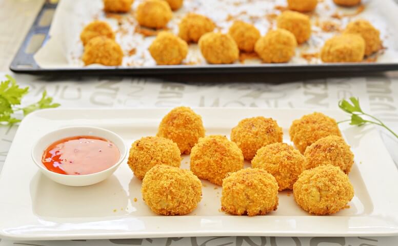 - יוצרים כדורים בקוטר של 3-4 ס”מ ומגלגלים בפירורי לחם. מניחים על נייר האפיה המשומן (הערה: במידה והתערובת מתפרקת יש להוסיף ביצה נוספת).