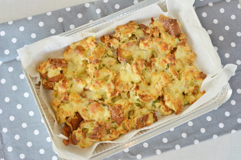 - מעבירים את התערובת לתבנית ומשטחים. מפזרים מעל גבינה צהובה או מוצרלה מגורדת, מכניסים לתנור החם ואופים במשך כ-30 דקות, עד להזהבה.