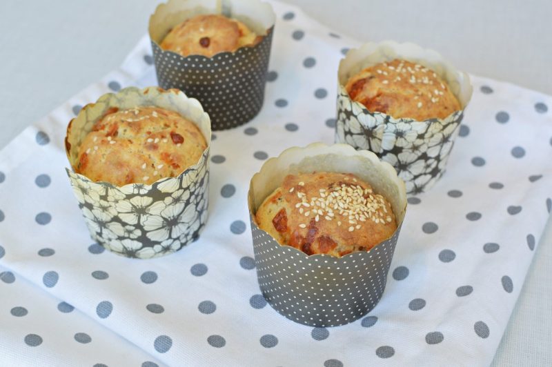 - יוצקים את התערובת לתבניות מאפינס מקרטון (“קוקטים”), מפזרים מעל קצת שומשום ומכניסים לתנור החם. אופים במשך כ-30 דקות עד להזהבה קלה.