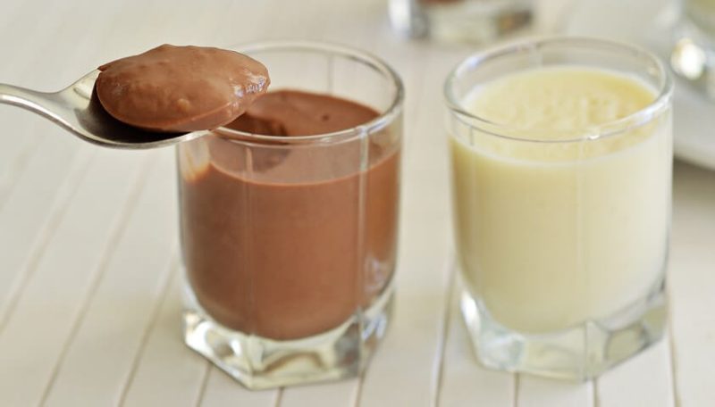 - מעבירים לכוסות ומניחים לתערובת להתקרר מעט (רצוי להשתמש בכוסות מזכוכית מאחר והתערובת חמה). לאחר מכן עוטפים את הכוסות בניילון נצמד ומכניסים למקרר להתייצבות של 3-4 שעות לפחות לפני ההגשה.