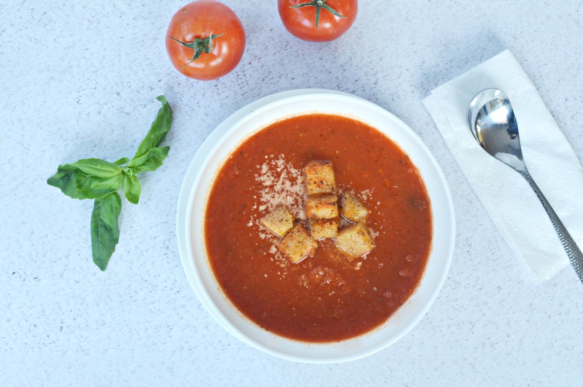 - מעל כל קערה אישית ניתן לפזר גבינת פרמז’ן וקרוטונים.
