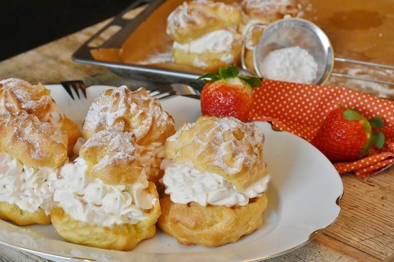 - לאחר שהפחזניות התקררו, חותכים אותן באמצע בעזרת סכין וממלאים בקרם.