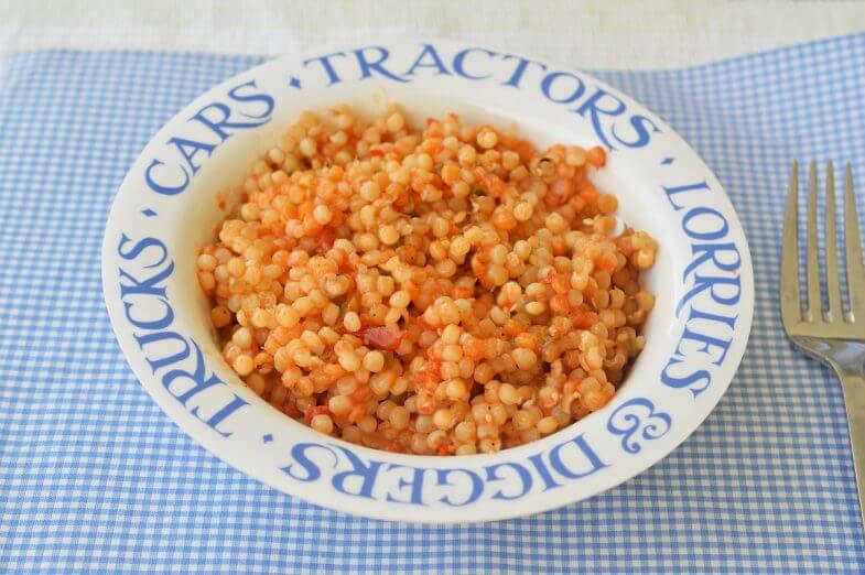 - מוסיפים את העגבניות המגורדות והקטשופ, מתבלים ומערבבים 2 דקות נוספות.