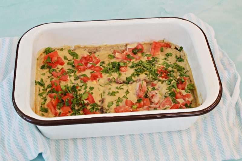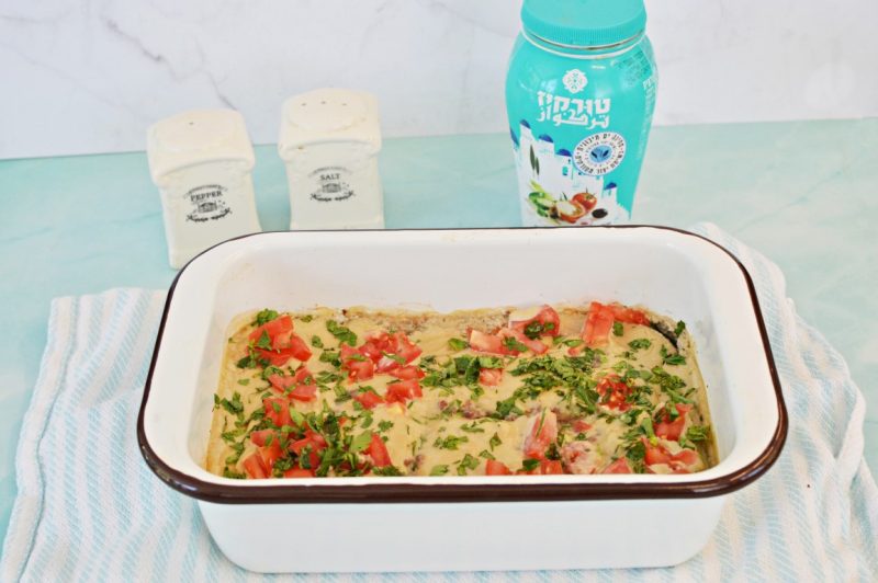 - מוציאים מהתנור ומפזרים מעל פטרוזיליה קצוצה ועגבניות קצוצות.