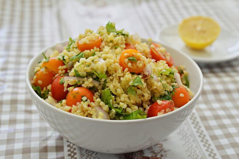 - מערבבים את הבורגול עם הבצל, עגבניות השרי והכוסברה ומתבלים.