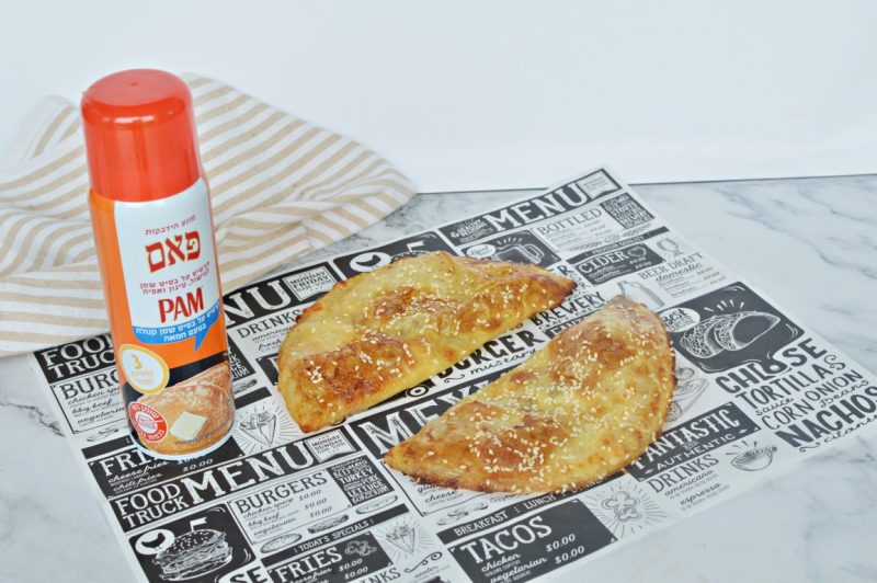 - מתיזים תרסיס שמן על החלק העליון ומפזרים שומשום מעל.