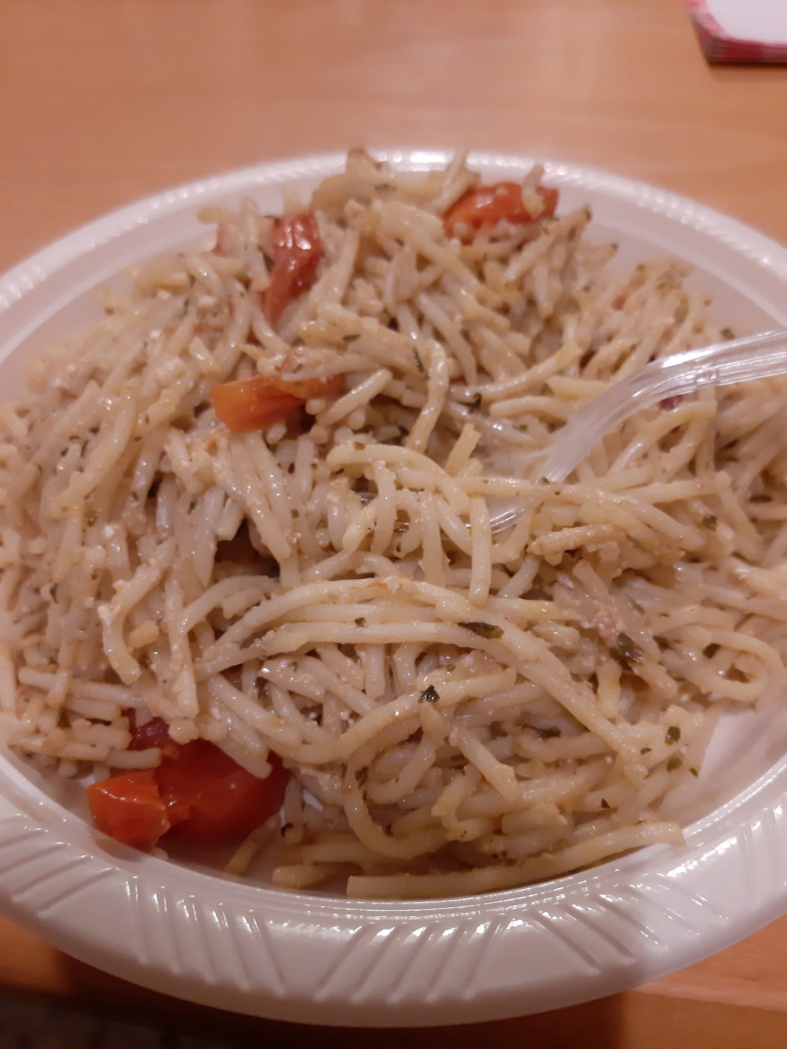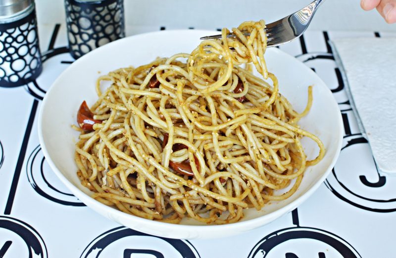 מצרכים להכנת ספגטי בפסטו ועגבניות
