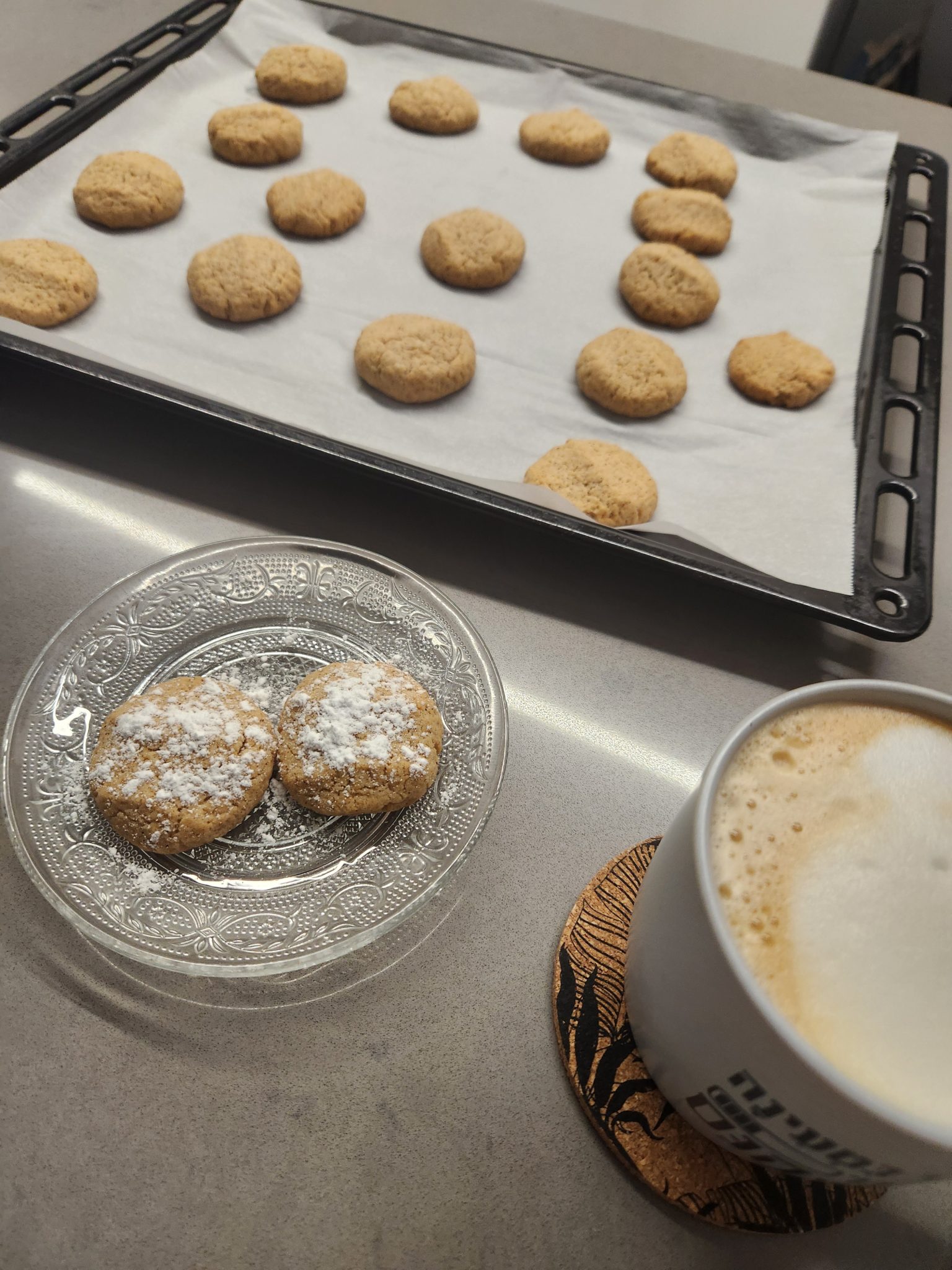 - יוצרים כדורים ומשטחים לעוגיות (אם הבצק יבש/מתפורר- ניתן להרטיב ידיים). מניחים במרווחים על נייר אפיה.