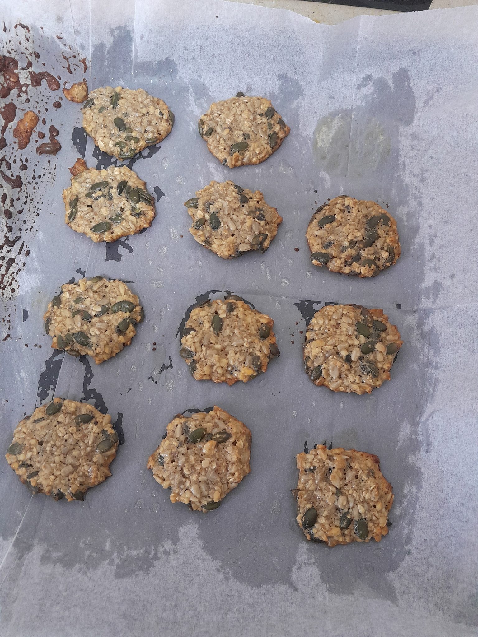 - יוצקים בעזרת כפית עיגולים קטנים ומניחים במרווחים על נייר האפיה. משטחים מעט בעזרת הכפית.