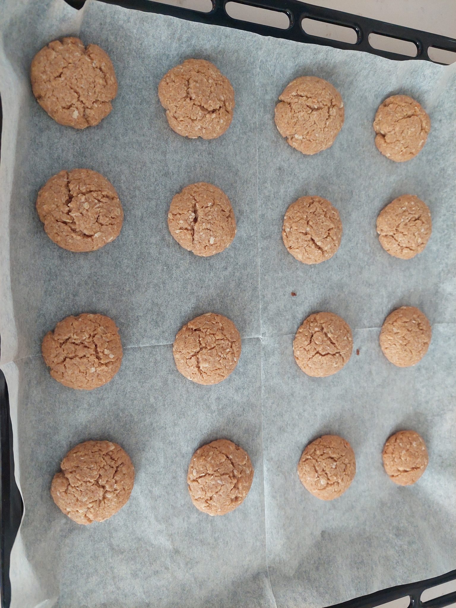 - יוצקים כדורים קטנים בעזרת הידיים ומשטחים אותם. מניחים בתבנית מרופדת בנייר אפייה.