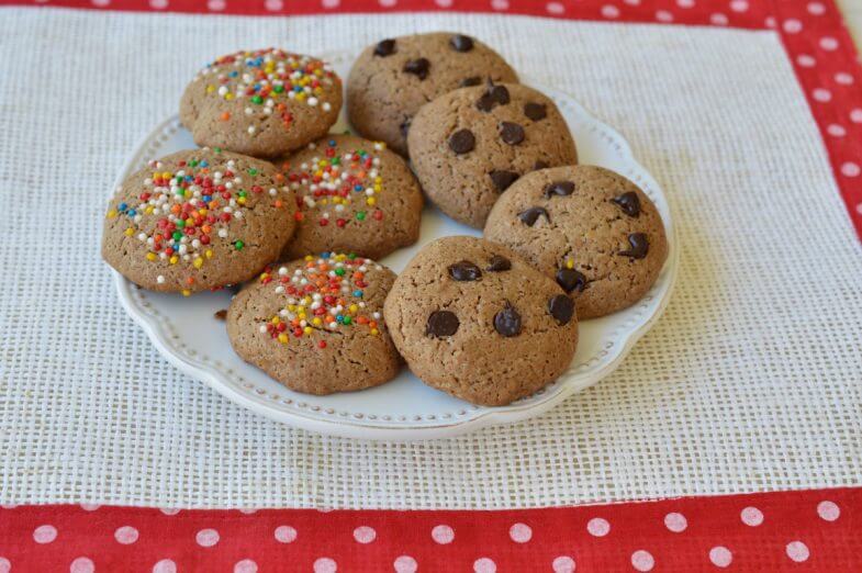 - יוצרים כדורים קטנים בקוטר כ-3 ס”מ (אם התערובת דביקה ניתן להרטיב את הידיים) ומניחים על נייר אפיה. משטחים לעיגולים בקוטר של כ-4 ס”מ. מפזרים מעל שוקולד צ’יפס או סוכריות צבעוניות ומהדקים לעוגיה בעזרת האצבעות.