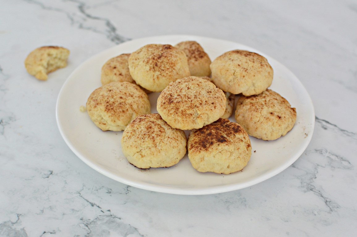 - יוצרים כדורים קטנים, מניחים על נייר האפיה ומועכים מעט עם האצבעות לקוטר של כ-3.5 ס”מ. מפזרים מעל מעט אבקת קינמון.