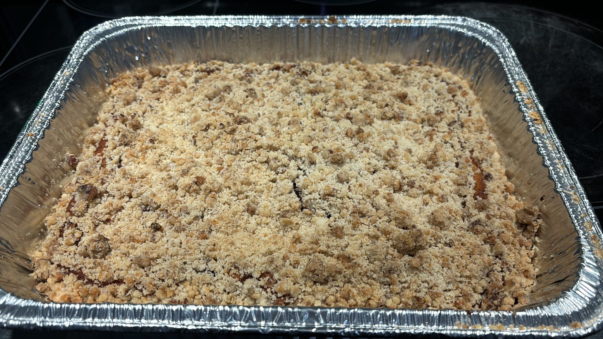 - לקראמבל: כוס (140 ג’) קמח רגיל, חצי כוס אגוזים טחונים, 3 כפות מלאות סוכר, רבע כוס (60 מ”ל) שמן