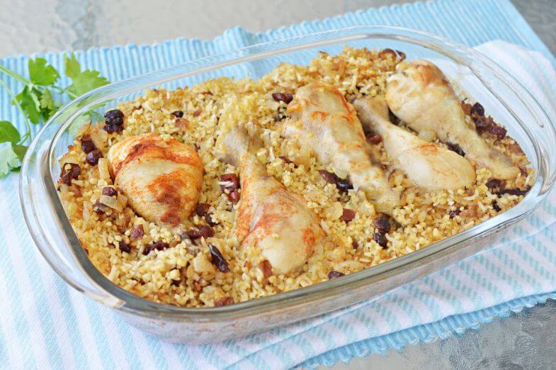 - מתבלים בנפרד את השוקיים עם סילאן, פפריקה, מלח ופלפל שחור. מניחים בתוך תערובת הבורגול.
