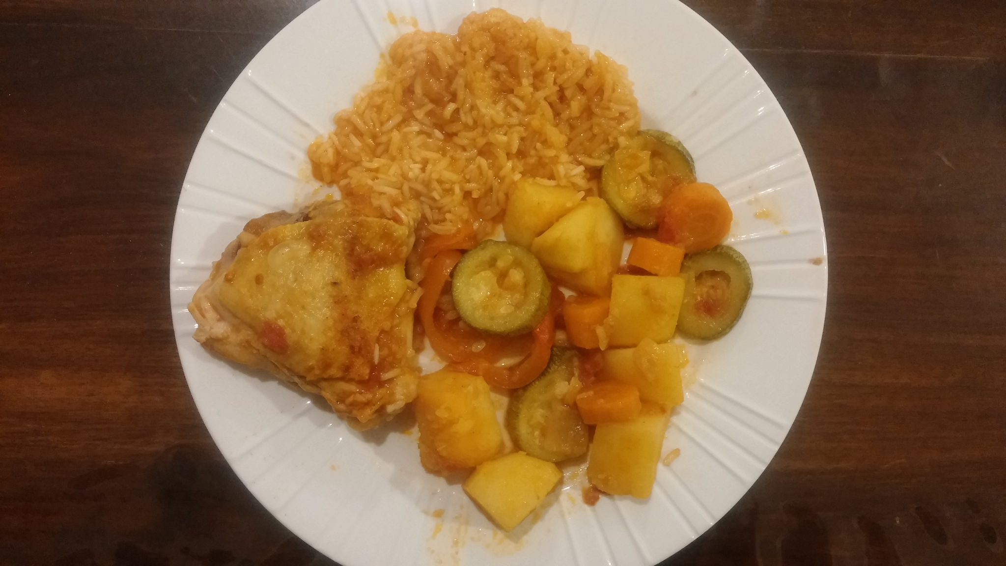 - מערבבים בכוס 3/4 כוס מים חמים עם 2 כפות גדושות רסק עגבניות ומוסיפים לסיר. מערבבים עם הירקות והעוף, מכסים את הסיר ומבשלים על אש בינונית-נמוכה במשך שעה (מידי פעם יש להרים את המכסה ולערבב. בנוסף, יש לוודא שהתבשיל אינו מתייבש. במידה וכן, יש להוסיף כחצי כוס מים חמים).