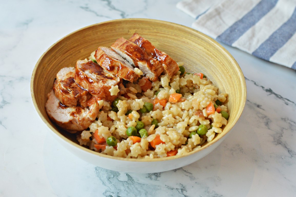 - מתבלים את חזה העוף במרינדה (משאירים קצת מהמרינדה לשלב מאוחר יותר) ומניחים על צלחת הטיגון.