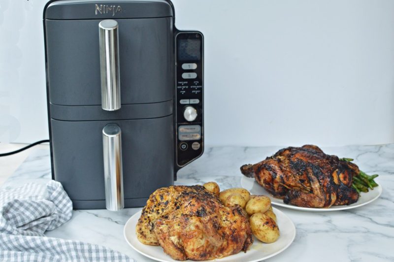 - מכניסים את העוף הראשון למגירת הבישול התחתונה ואת העוף השני למגירת הבישול התחתונה.