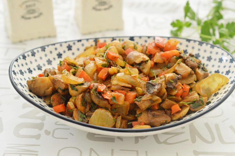 מצרכים להכנת סלט מבושל של פטריות וגמבה