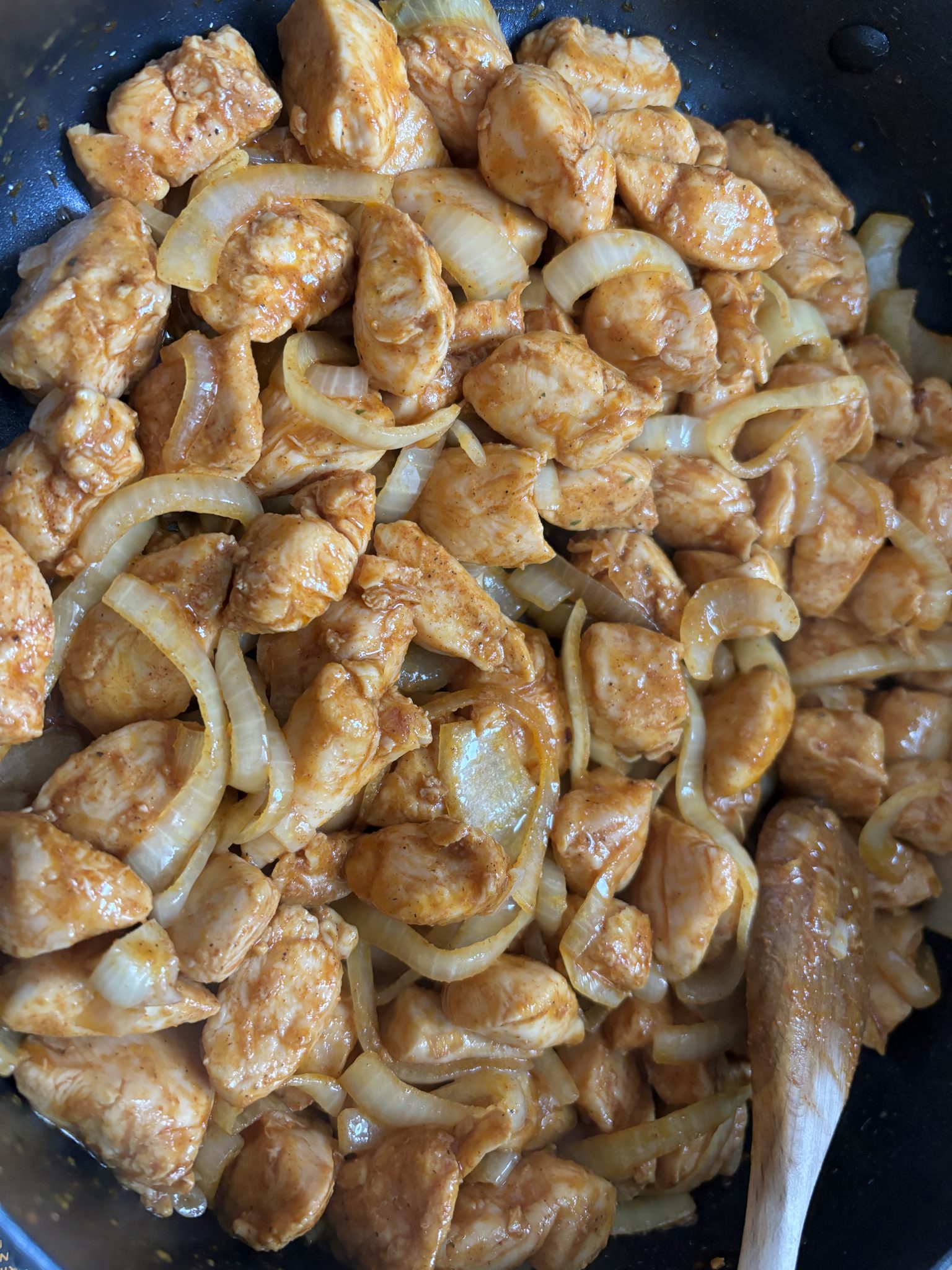 - 800 גרם פילה עוף (או חזה עוף) חתוך לקוביות קטנות