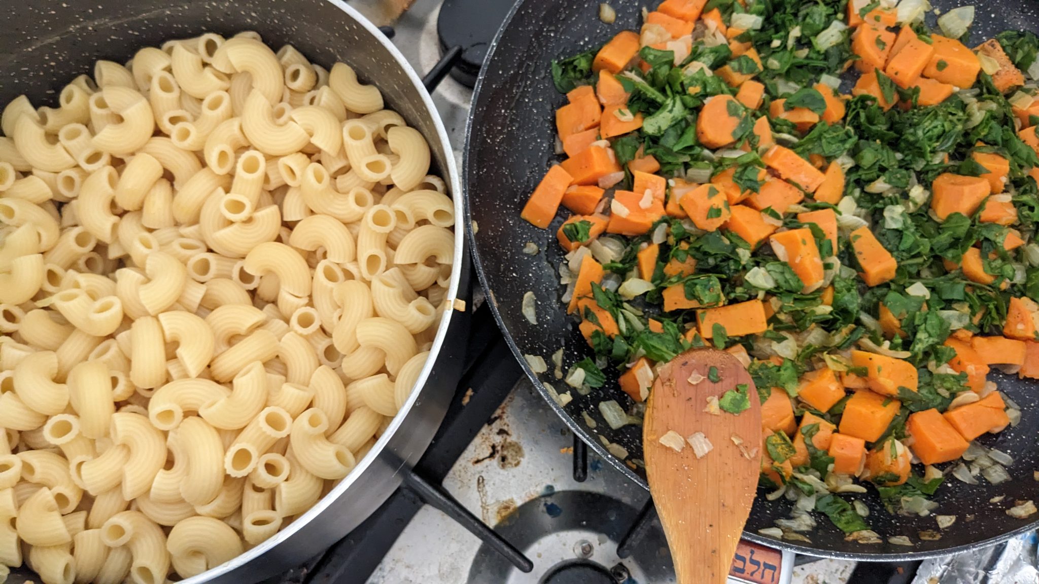 - 1 בטטה גדולה חתוכה לקוביות קטנות