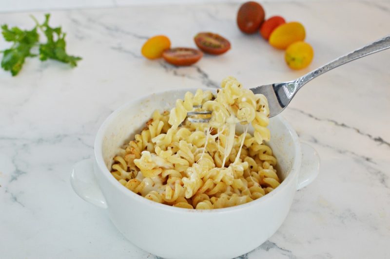 - מסננים את הפסטה ומחזירים לקערה. מוסיפים שמנת לבישול, מלח, פלפל שחור, פפריקה ומערבבים.