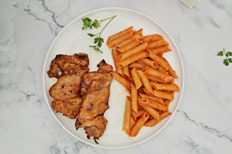 - מערבבים בסיר מכשיר הסמארט ליד: רוטב לפסטה, רסק עגבניות, שום כתוש, מים רותחים, מלח ופלפל שחור. מוסיפים את הפסטה ומערבבים.