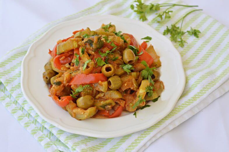 - מוסיפים זיתים ומבשלים כ-5 דקות נוספות. מפזרים כוסברה או פטרוזיליה ומתבלים בפפריקה, מלח ופלפל שחור. מערבבים במשך כדקה. טועמים ומשפרים מליחות לפי הטעם.
