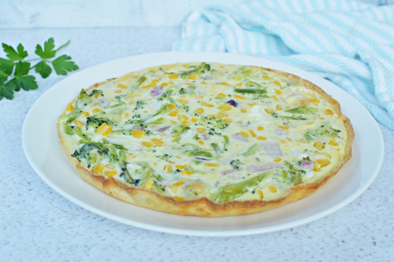 - משמנים תבנית עגולה ומניחים את הטורטיה בתחתית.
