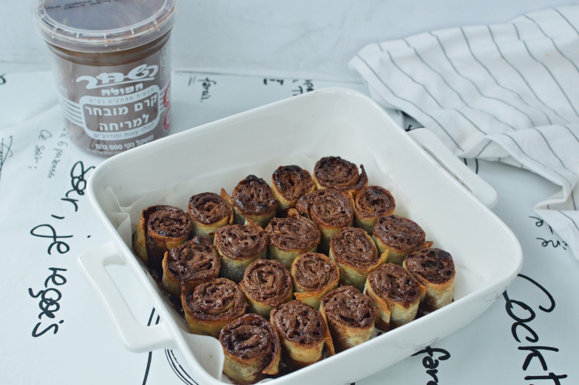 - מורחים מעל כל טורטיה ממרח שוקולד השחר ומגלגלים לגליל הדוק.