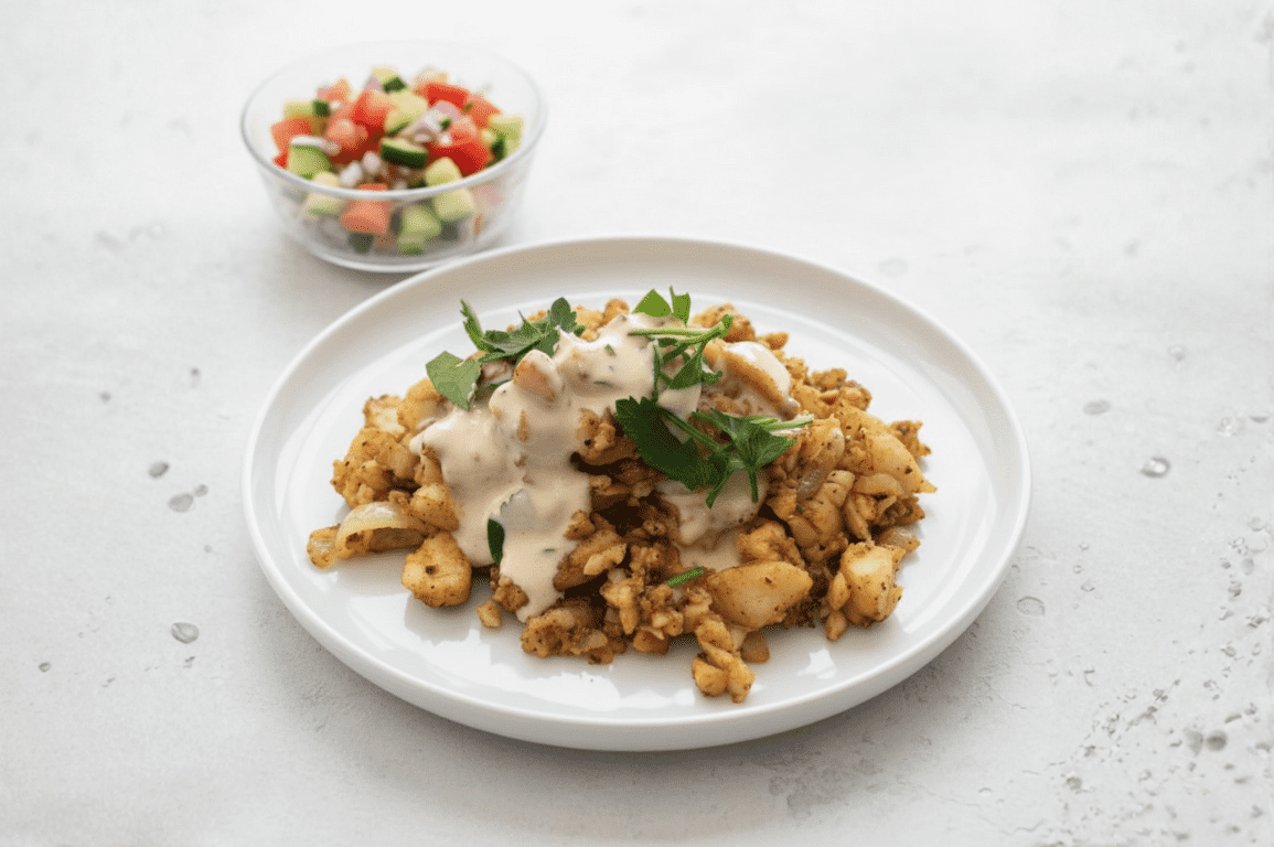 *אפשר להגיש על טורטיה או בתוך פיתה עם טחינה מעל. אפשר להגיש על אורז לבן או פירה תפו”א.